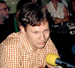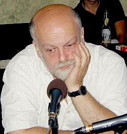 Лев Пирогов: От народа же скрывали истинную историю. Но в последние десять лет глаза окончательно открыты, и мы знаем, что всем хорошим мы обязаны именно цивилизующему влиянию Европы. Таким образом, непосредственно связано. Все знают на каком-то генетическом уровне, что Россию как государство учредили то ли викинги, то ли норманны. Вот так и связано. Просто понимаете, для общества хороша та идея, которая легко локализуется в каком-то таком идеальном образе. То есть построить что-то на руинах - это не интересно, чинить не интересно. Интересно взять новое, или, еще лучше, чтобы дали его. Алексей Кортнев: Я несколько растерян, потому что только что было три очень содержательных и разумных выступления, и боюсь, что ничего нового я не скажу. Это вещь, которую я периодически смотрю по телевизору. Причем, я даже понимаю, почему? Потому что я никогда сам в футбол играть не умел и, наверное, от обиды на это, как-то никогда особо не болел за футбол. Единственно, конечно, переворот в сознании происходит раз в несколько лет, раз в четыре года, когда происходят чемпионаты мира. Тогда, конечно, да, становится сильно-сильно интересно, в остальное время - не особенно. Ну и, конечно, ужасное оживление среди друзей происходит периодически, особенно сейчас, когда происходят все эти коллизии с назначением нового тренера сборной России. Сегодня по телевизору в торжественной обстановке сказали, что это, очевидно, будет Валерий Газаев. И даже показывали, как он идет по коридорам Олимпийского комитета, то есть - такое шествие. Выглядит это, мягко говоря, забавно; грубо говоря, печально. Судя по всему, теперь наша сборная будет играть, как ЦСКА. Ну - здорово, что можно сказать. Семен Файбисович: Я болельщик почти с пятидесятилетним стажем, и долгие годы футбол для меня это был "Спартак", больше ничего. Потом постепенно и невольно сборная СССР стала объектом, но уже такого - менее однозначного отношения. Потому что с одной стороны патриотизм и переживания, а с другой стороны, по мере роста нонконформизма, так в организме все более сложный и скептический был взгляд на советский футбол, и даже была такая гипотеза, что футбол - это игра свободных людей, поэтому у Советского Союза не получается. Во всем остальном всех победили, а тут все как-то не очень. Ну и тогда же непонятно было, к чему это еще может придти, к чему сейчас пришло. Что касается чемпионатов мира, когда вот нам начали их показывать, то это, конечно, прежде всего, потрясающий спектакль, где уже эмоции в смысле "боления" уходят на второй план. Я от России ничего не ждал. Так, теплилась надежда, но по первой игре сразу стало ясно, что ничего не будет, потому что играют в свою игру. Все прыгают выше головы, творят чудеса, а русские играют в свою игру. И уже переключился просто на чемпионат, как на зрелище, как на какое-то культурное событие, разумеется, требующее большого расхода эмоций, но достаточно при этом позитивных, не переживательных. Андрей Геласимов: Футбол, с одной стороны, естественно, явление очень социальное, значимое и крупное, особенно когда трибуны взрываются, когда побеждает твоя команда, и когда поет Фрэди Мэркьюри "We are champions" в конце финала лиги чемпионов и финала чемпионата мира - это так. Но с другой стороны - очень интимное мероприятие, поскольку каждый болельщик проигравшей команды плачет в одиночку. Я всегда